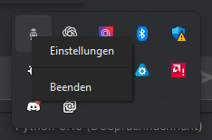 - Nach Start erscheint ein Tray‑Icon. Das kleine Aufnahme‑Widget wird angezeigt, wenn Discord oder die App fokussiert ist.